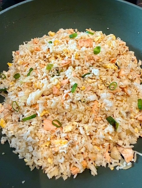 Gebakken rijst met zalm (fried rice)