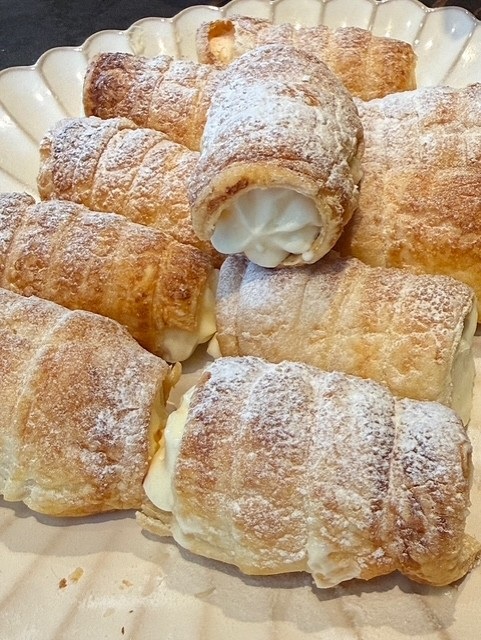 Roomhoorntjes zijn een heerlijk klassiek gebakje dat er altijd feestelijk uitziet, maar verrassend eenvoudig te maken is. In dit recept gebruik ik knapperig bladerdeeg en vul ik de hoorntjes met een zachte Zwitserse room: een luchtige combinatie van banketbakkersroom en opgeklopte slagroom. Deze vulling is romig, niet te zoet en perfect in balans met het krokante deeg. Ik gebruikte roestvrij stalen roomhoornpennen en cannoli buisjes voor de vormpjes.