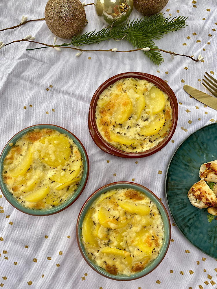 Een lekkere aardappelgratin stond al lang op mijn baking list. Nu met de Kerstdagen in het vooruitzicht, was het een mooi moment om deze alvast uit te proberen. En met succes! En ook zo leuk serveren in die tapas schaaltjes. Ook maakte ik een grotere variant van de aardappelgratin.