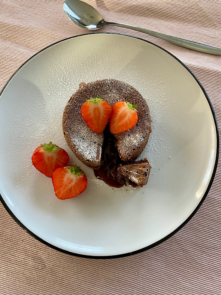 Dit dessert is zo makkelijk te maken en het mooie hiervan is, dat je ze vooraf kunt maken en in de koelkast kunt bewaren. Makkelijk als je een diner moet voorbereiden en weinig tijd voor het dessert hebt bijvoorbeeld. Je hoeft de cakejes dan alleen nog een paar minuten in de oven te doen voor het serveren. Dit cakeje is perfect als de buitenkant steviger is en de binnenkant een vloeibare kern heeft. De tijd en temperatuur zijn hierbij belangrijk. Voor mij werkt het het beste als je de cakejes 9 min in een voorverwarmde oven van 200 graden gebakken worden. Misschien een idee om dit recept bijvoorbeeld te halveren en een keer uit te proberen voor het grote diner!