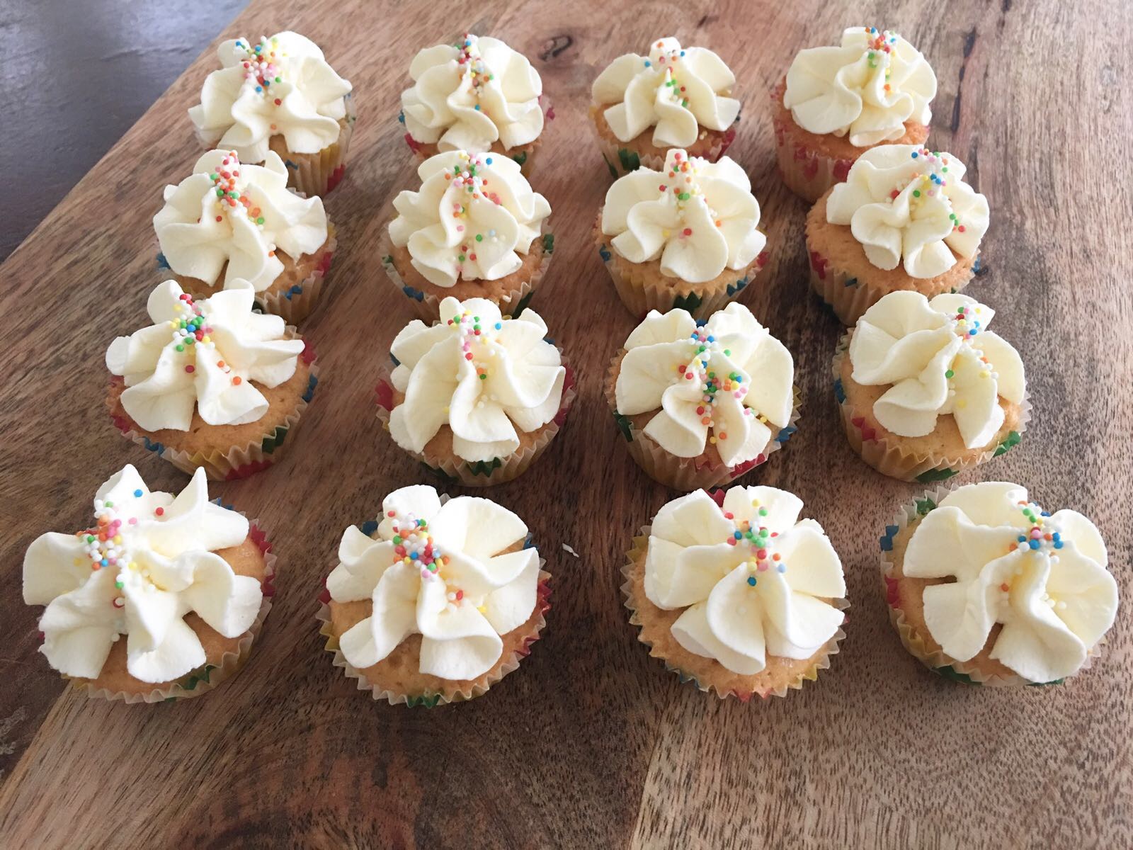 Ingrediënten voor 60 mini cupcakes of 24 grote cupcakes: