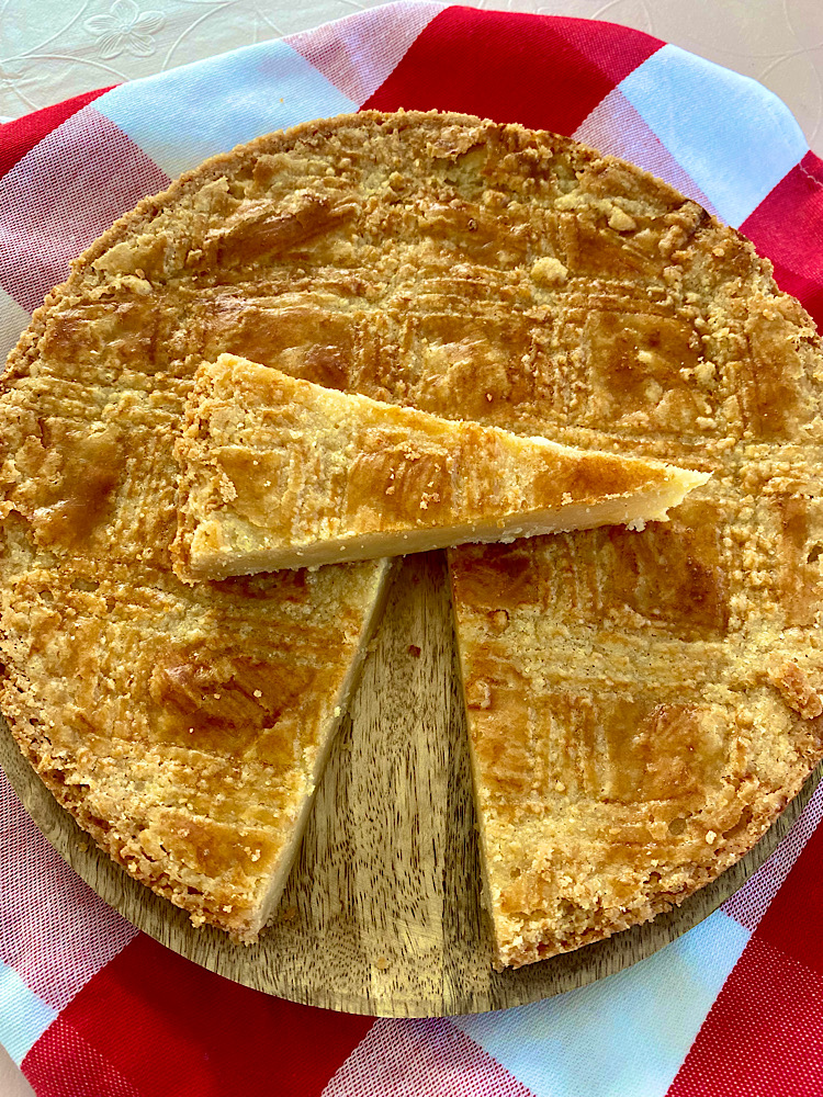 Bestrijk het deeg met losgeklopt ei en maak er een mooi ruitjesmotief in. Bak de boterkoek ca 35 minuten tot de bovenkant mooi bruin is. De boterkoek lijkt dan nog niet gaar omdat het nog wat wiebelig zal zijn maar zodra dit is afgekoeld dan wordt dit vanzelf stevig.