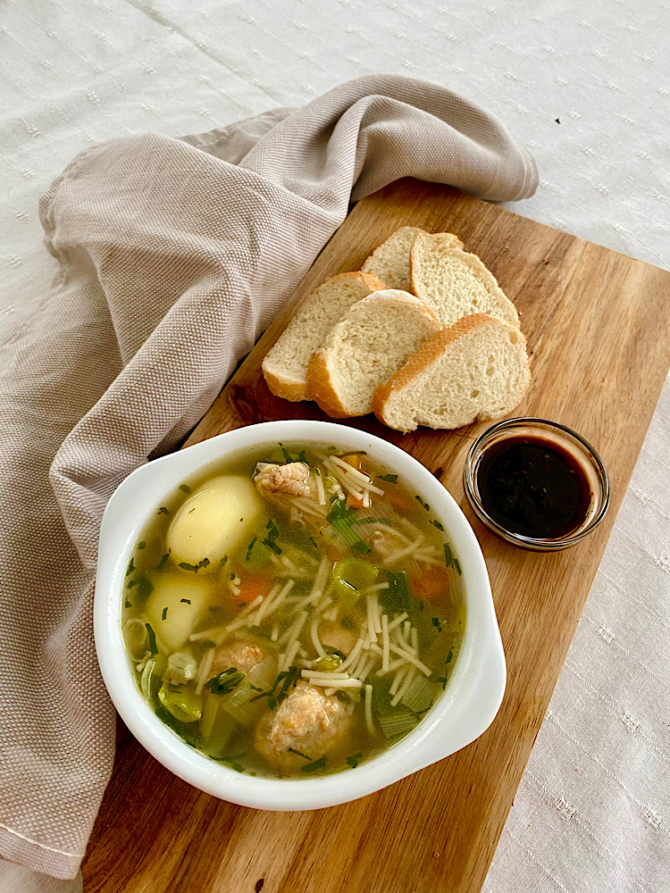De lekkerste gevulde groentesoep met (kip) gehaktballetjes, kip en aardappel
