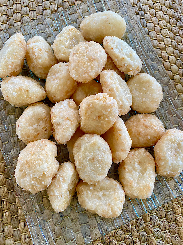 Je kemplang heeft een mooi hard suikerlaagje nu. Eet smakelijk.