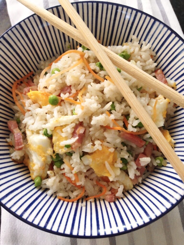 - 500 gram gekookte en afgekoelde basmatirijst ( dit mag dus ook rijst van de vorige dag zijn, beter zelfs)