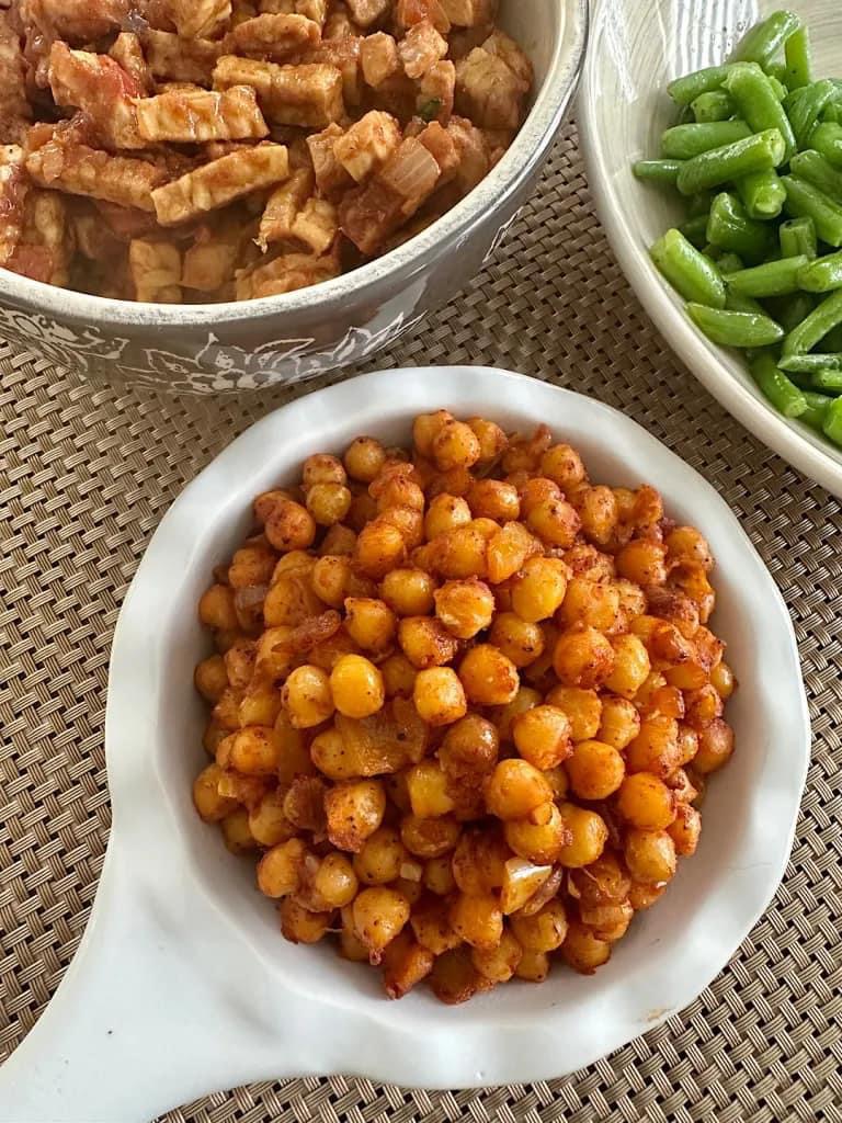 Ghoegrie oftewel gebakken kikkererwten is een Surinaams Hindoestaans gerecht dat erg populair is bij de Hindoestanen. Vaak wordt dit als hapje geserveerd tijdens bruiloften en verjaardagen. Ook op Hindoestaanse feestdagen wanneer er vegetarisch wordt gegeten, komt dit gerecht vaak op tafel. Ik vind het heerlijk, vooral als het lekker pittig wordt klaar gemaakt. In dit artikel leg ik de snelle variant uit, namelijk met kikkererwten uit blik. Je kunt ook gedroogde kikkererwten kopen en deze een nachtje wellen in water en daarna koken, maar dat is mij te veel werk en ik vind deze snelle variant, net zo lekker.