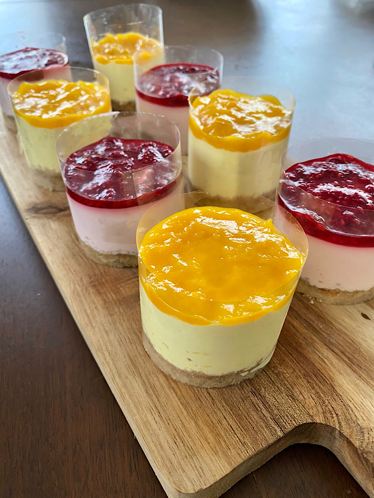 - 250 gram verse frambozen/mango in stukjes (diepvries kan evt. ook)