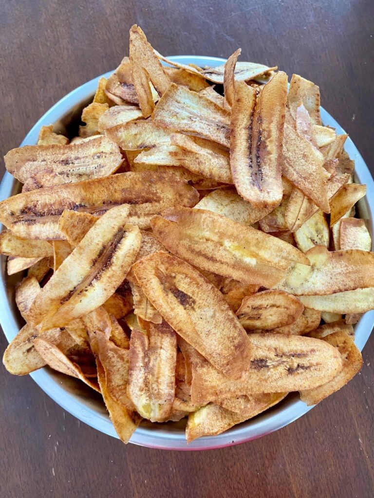 In huis zijn wij allemaal dol op bananenchips. In m’n eentje eet ik zo een zak leeg….of 2..Te erg! Alleen vind ik de zakken best prijzig. Voor het bedrag van 2 zakken maak zelf een halve emmer bananenchips en nog veel lekkerder ook! Het is wel een werkje maar echt te moeite waard en hierna koop je nooit meer een zakje 😉