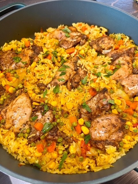 Jasmijnrijst, kip en groenten uit één pan