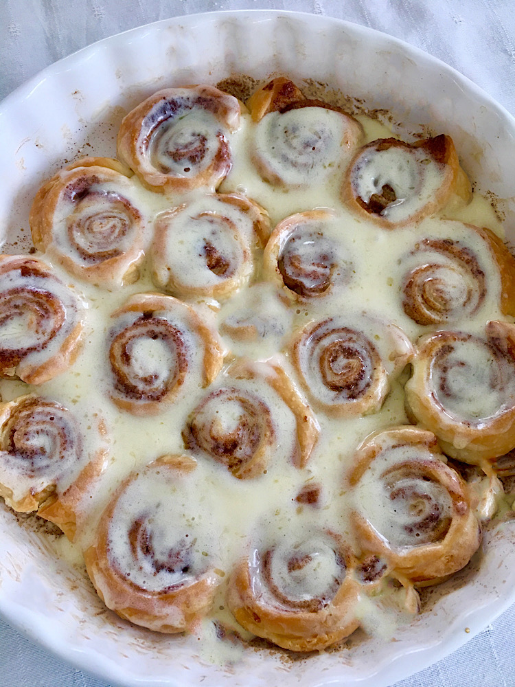 Kaneelbroodjes van bladerdeeg (cinnamon rolls)