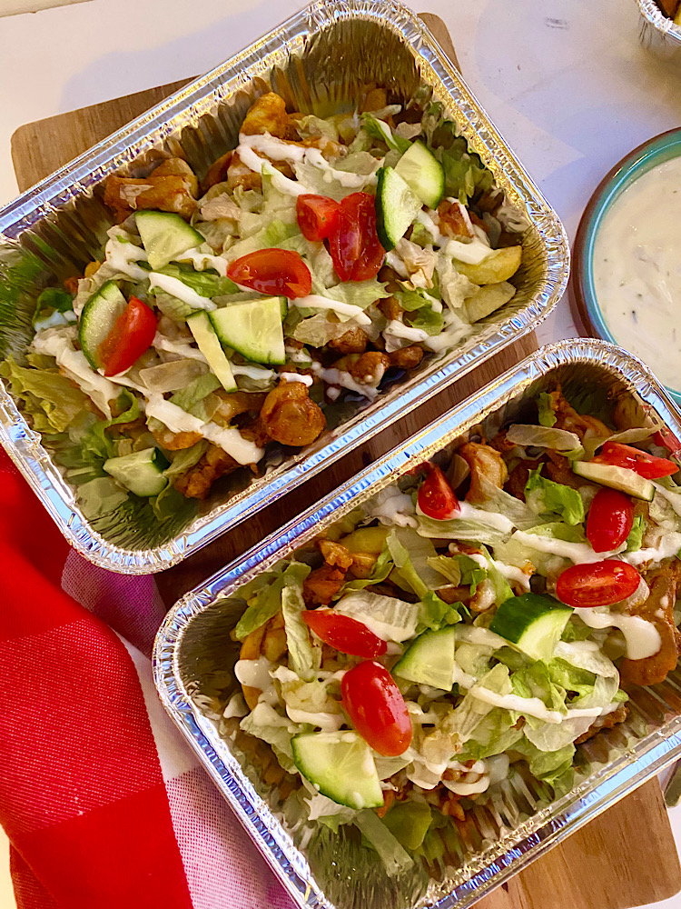 Laatst wilde ik de jongen verrassen met een lekkere maaltijd. Ik zei we gaat vandaag lekker kapsalon eten. M’n oudste zei me meteen; “oh lekker, gaan we bestellen?” “Nee jongen, ik ga het zelf maken” Waarop hij mij een beetje wazig aankeek, hahaha. Maar het is echt zo makkelijk te maken en je weet precies wat er in gaat. De typische kapsalonbakjes vond ik bij de grotere toko. We hebben gesmuld! Omdat ik zelf op dit moment koolhydraatarm eet, nam ik er geen patat bij maar wat meer sla, heerlijk!