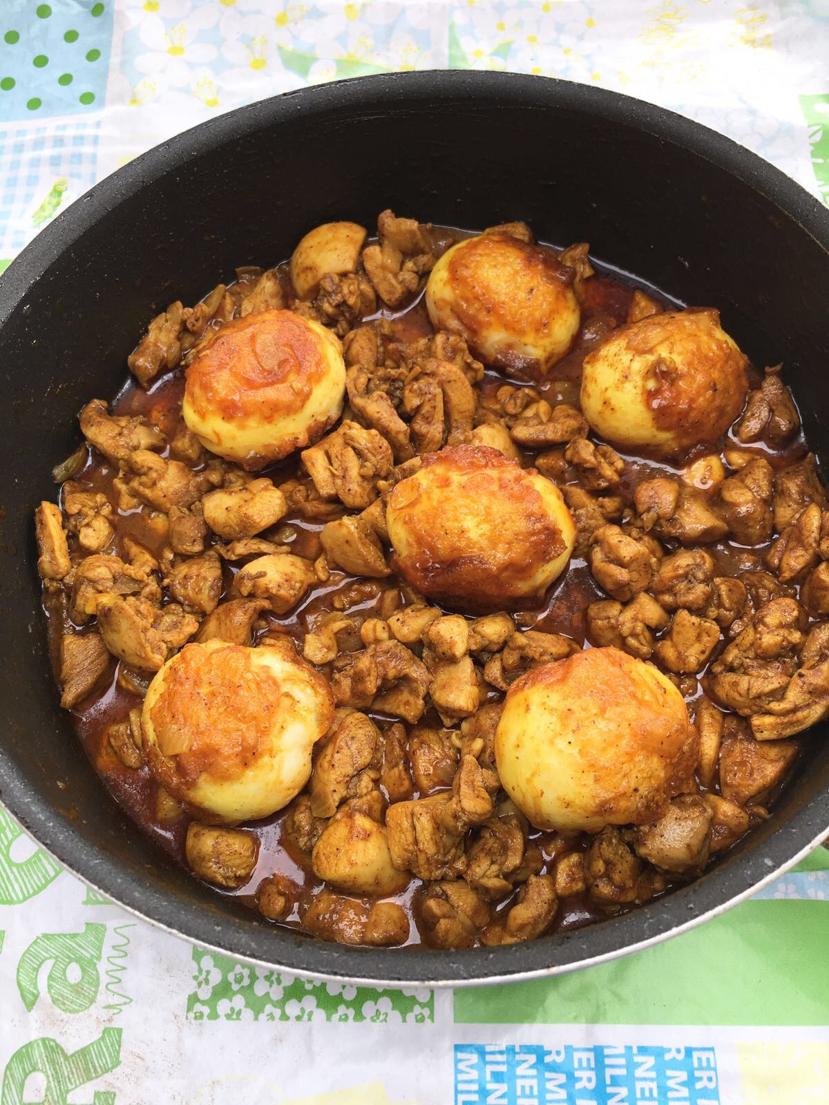 Laat het vlees in circa 30 minuten gaar stoven op een zacht vuurtje. De laatste 5 minuten laat je de eieren even mee koken. Voeg als laatste zout naar smaak toe, even omscheppen en klaar is dit heerlijke gerecht.
