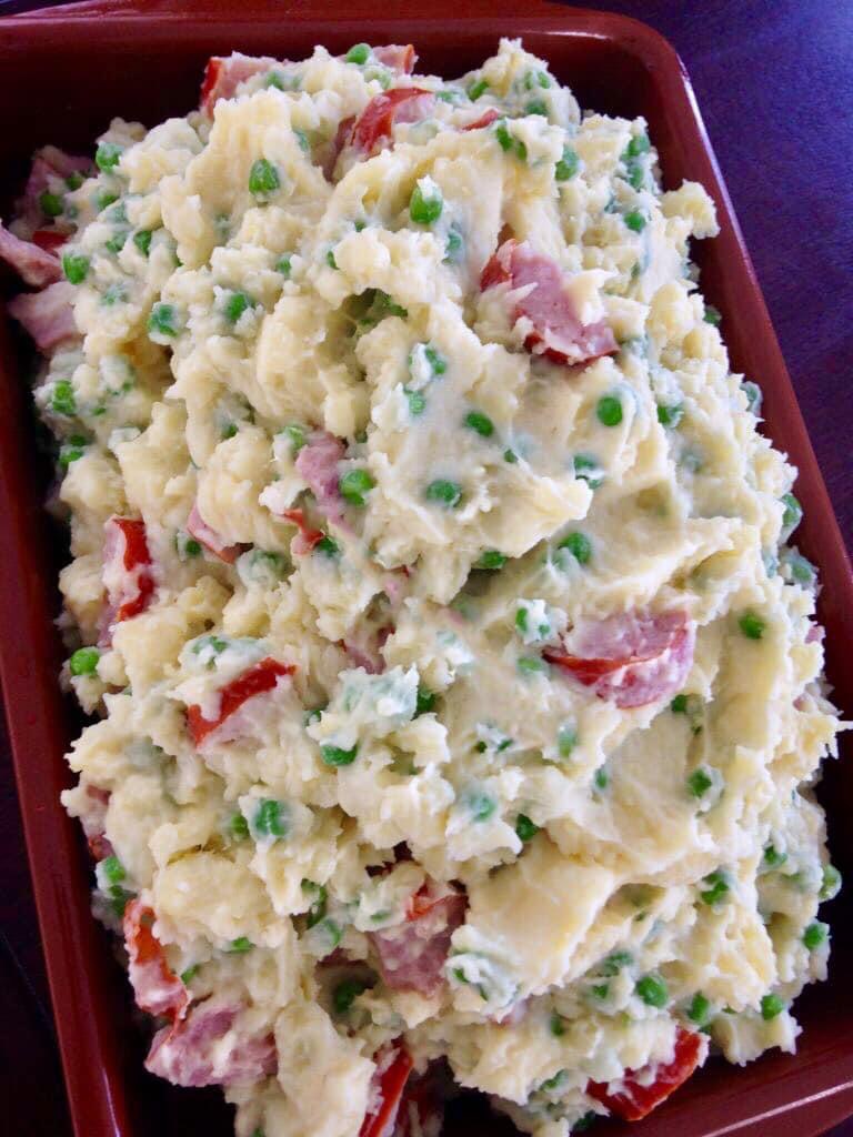 Wij aten de puree met mijn heerlijke kipgehaktballetjes in jus Maar ook zonder jus en extra vlees, is de puree heerlijk.