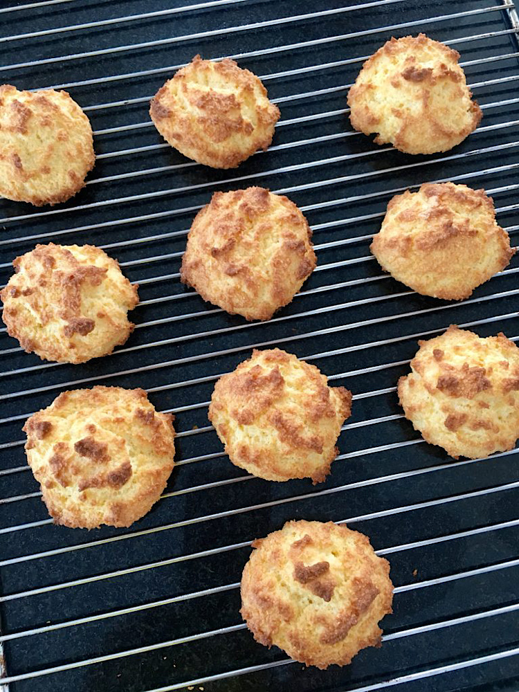 Maak 10 hoopjes/balletjes op het bakpapier. Bak de kokosmakronen in 20 minuten goudbruin.