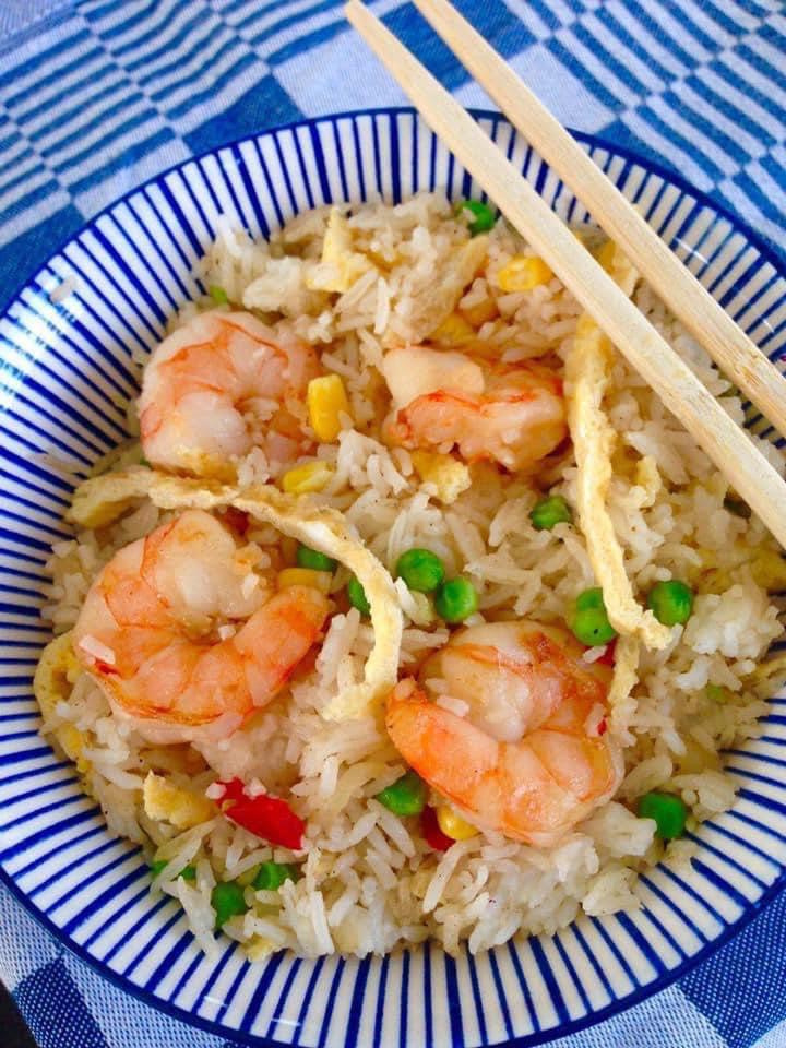 Nasi Hong Kong met grote garnalen
