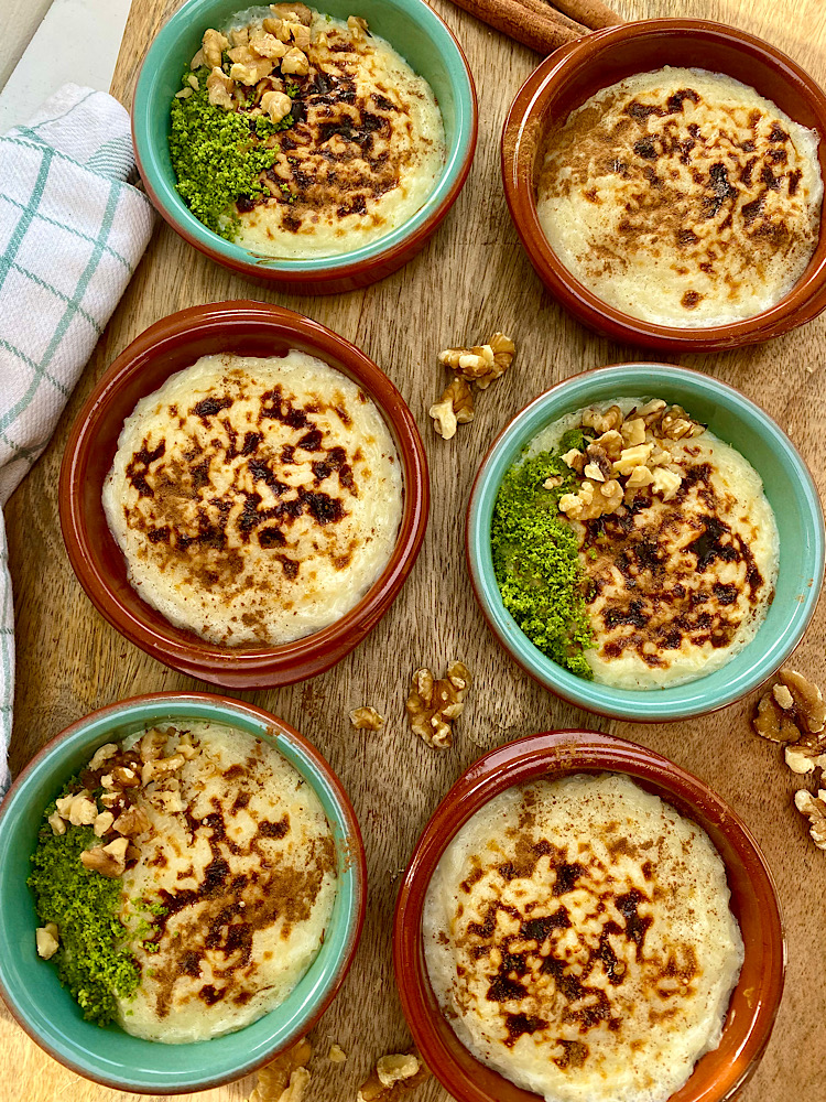 - voor de garnering, gemalen pistachenoten/walnoten of kaneel