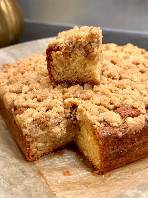 Deze cake lust eigenlijk iedereen wel. De dikke laag kaneelkruimels geven een lekkere bite naast de zachte roombotercake. De hele woning ruikt heerlijk naar kaneel en zeker met deze koude maanden, kan ik hier extra van genieten. Deze cake is een nieuwe favoriet van het gezin.