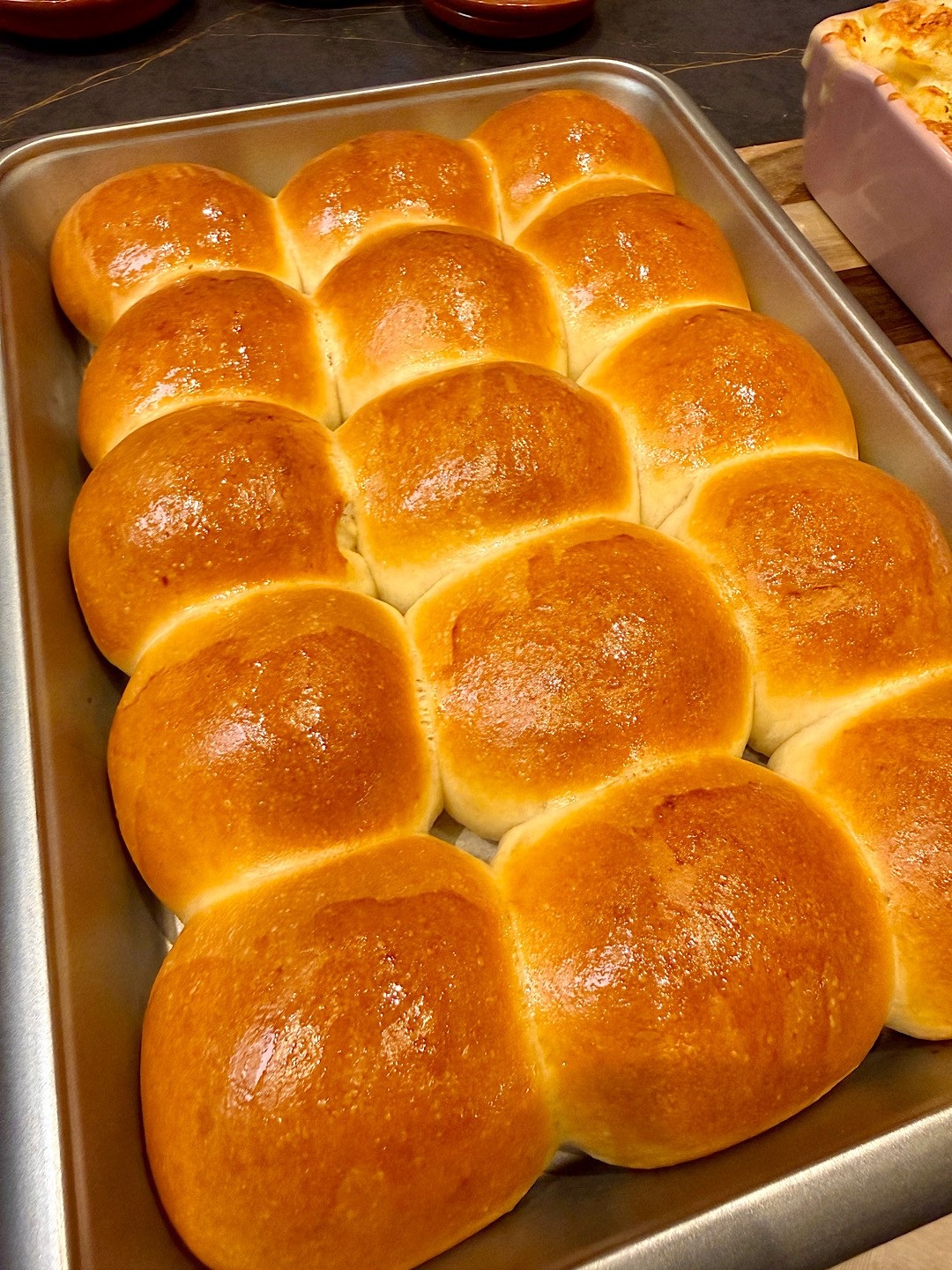 Leg een bakplaat met heet water op de bodem van de oven. De stoom zorgt ervoor dat je broodjes extra fluffy worden.