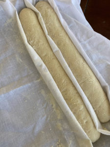Dek de baguettes af met een theedoek en laat dit nog 30 minuten na rijzen.